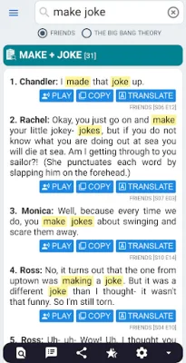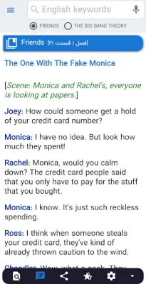In summary, this application is a valuable tool for English language learners, offering a vast collection of dialogues and phrases from popular TV shows, as well as the ability to search for compound words and detailed explanations. It is a practical and relevant resource that caters to different levels of proficiency and helps learners to improve their speaking, listening, and overall understanding of the English language.