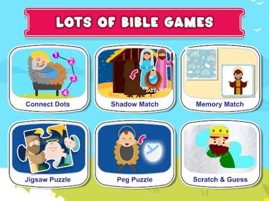 Our Bible App offers a variety of engaging and educational games centered around the Bible. These include jigsaw puzzles, true or false quizzes, trivia quizzes, peg puzzles, spot the hidden differences, coloring book pages, scratch and guess games, and ABC flash cards. These games are designed to make learning about the Bible easy and fun for the whole family. With a wide selection of games to choose from, our app is a great way to get familiar with the Bible. The colorful and brain-busting puzzles will challenge your mind and improve your fine motor skills. The fun and bright coloring pages are perfect for all ages, making it a great activity for the whole family to enjoy together. Our Bible App is suitable for all ages and includes stories and pictures about well-known biblical figures such as David and Goliath, Daniel in the Lions’ Den, and the Miracles of Jesus. It also offers bedtime Bible stories for boys and girls, making it a great way to incorporate the Bible into your daily routine. For those looking for a more interactive experience, our Daily Bible App offers a variety of word puzzles and games. These include Bible word puzzles, Bible verses, and Bible quizzes that can be played with friends. With new levels and quizzes added daily, there is always something new to learn and discover. This app is perfect for word game enthusiasts, word connect addicts, and word puzzle masters. It offers a fun and engaging way to study the Bible and learn new words and verses. And with the ability to play offline, you can enjoy these games anytime and anywhere. Our Daily Bible App is designed to introduce the Bible in a playful and interactive way. It is a great tool for all ages to discover God's love and connect with the Bible. So why not give it a try and see how much fun learning about the Bible can be?