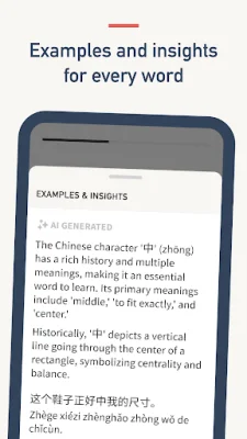 In addition to traditional flashcards, Daily Chinese offers a variety of question types to help users fully understand each word or idiom, including Chinese characters, pinyin, and definitions. The app also provides AI-powered insights for each word, including example sentences, word insights, etymology, and cultural context.