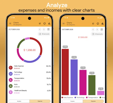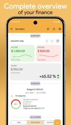 My Budget is a user-friendly and secure financial management application that allows you to easily track your expenses and income. With its modern and intuitive interface, you can efficiently monitor your accounts and improve your financial habits. This app offers a variety of features to help you stay on top of your finances, including complete management of your daily, weekly, monthly, or yearly income and expenses. You can also create customized spending budgets to keep your expenses under control and manage your bank accounts, cards, and wallets in a simple and organized way. One of the standout features of My Budget is its ability to manage accounts in different currencies with always up-to-date exchange rates. This makes it easy for users who have multiple accounts in different currencies to keep track of their finances. The app also offers quick transfers between accounts with just a single tap, as well as the option to automate recurring transactions to save time and stay in control. In addition to managing your expenses and income, My Budget also helps you keep track of loans and due dates with dedicated reminders. The app also provides clear and dynamic charts to help you analyze your finances and identify areas where you can save more. You can also set up daily or budget reminders to receive automatic notifications and never forget to record a transaction again. My Budget also offers a currency converter that is always updated, as well as the ability to access your data from your smartphone, tablet, or computer with the web version. This ensures that your data is always synced and protected. The app also has an advanced search function, allowing you to instantly find any transaction, category, or account. You can also export your data in multiple formats, such as PDF, CSV, XLS, or HTML, to print or share it easily. With My Budget, you can also set savings goals and track your progress over time. The app allows you to create custom categories and subcategories to organize your finances in the best possible way, and offers over 170 icons to personalize your categories. Your data is also protected with a password or fingerprint, and you can access the app from your computer as well. In summary, My Budget is an easy, powerful, and customizable app that gives you full control of your finances. With its various features and user-friendly interface, you can organize, save, and reach your financial goals with style. Download My Budget today and start managing your money smartly!