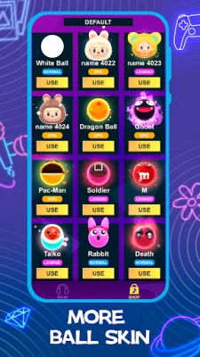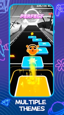 The game features simple one-tap controls, making it easy for anyone to pick up and play. The stunning visual effects, including dynamic lighting and rhythm-based animations, create an immersive experience for the player. The variety of ball skins available to collect and customize adds a fun and unique element to the game.