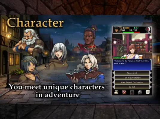 The game takes place in a vast world, starting in a town where players can gather information and meet various people at the local bar. Depending on the choices made during conversations, players can build friendly or hostile relationships with NPCs.