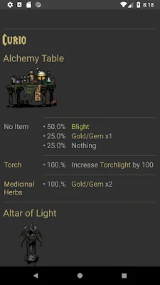 This application is a comprehensive knowledgebase for players of a certain game. It offers a variety of features to help players succeed in the game, including recommended provisions for different locations, hints on how to succeed in those locations, and information on curios and item interactions and outcomes. It also provides strategies for defeating bosses and enemies. One of the great things about this app is that it does not require an internet connection, making it accessible to players at all times.