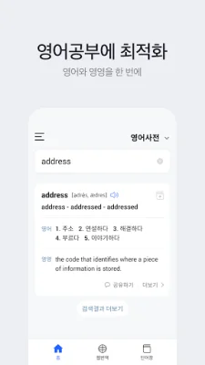 이 앱은 사전과 번역 기능을 하나로 합쳤습니다. 홈에서 쉽게 언어를 변경하고 단어와 문장을 입력하여 사용할 수 있습니다. 이 앱은 학습 능률을 높이기 위한 최고의 학습 메이트로서, 단어 자동 저장과 예문 저장이 가능합니다. 또한 단어 뜻 편집 기능을 통해 꼭 암기해야 할 뜻만 외울 수 있습니다. 연속 듣기 백그라운드 재생 기능을 통해 자투리 이동시간을 활용할 수 있으며, 최대 200개의 단어장을 만들 수 있습니다.