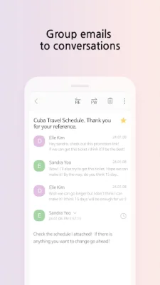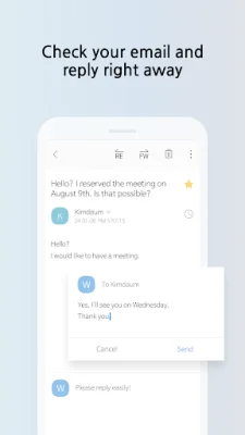 This application is a convenient email collector that allows you to access all of your email accounts in one place. It supports multiple accounts, including those from work, school, Gmail, Yahoo, AOL, Hotmail, and more. With this app, you can easily check all of your messages without having to switch between different email clients. One of the key features of this app is the conversation view, which allows you to see your sent and received messages in a thread view. You can also change the default setting to conversation view by going to the settings and turning it on. This makes it easier to keep track of your email conversations and stay organized. The app also offers filters that allow you to categorize your messages into four types. You can quickly view all of your starred, attached, or unread messages with just one click. Additionally, you can preview attachments, such as images, in one glance using the attachment list. And while writing or reading a message, you can easily check the file by using the thumbnail view. With the swipe feature, you can easily archive or delete messages by simply swiping them. You can also change the default setting to swipe to archive by going to the settings. The app also offers a reminder alarm feature, which allows you to set alarms for important messages that need to be checked in the future. And for easy replies, you can simply click on the bottom of the message and reply without having to navigate to a separate screen. Express yourself with emojis while writing to your loved ones. The app also offers passcode lock to keep your messages safe, even if you lose your phone. And with the widget feature, you can check your messages without even opening the app. The app also supports tablet view, making it optimized for a wider screen. In terms of permissions, the app requires storage access to send photos and videos, contacts access to email addresses registered on your device, and notification access to provide notifications of new mail arrivals. However, you can still use the app even if you do not grant these permissions, although some features may not be available. If you have any questions or need assistance, you can visit the Daum Customer Service Center.