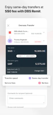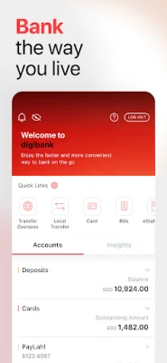 The app offers a variety of features to make everyday banking simple and efficient. You can easily check your account balance without logging in, open a fixed deposit account for multiple currencies, and apply for accounts, loans, and credit cards. The Starter Packs feature allows you to access multiple products and services in one go. You can also transfer money overseas with no fees using DBS Remit. Smart Shortcuts are available based on your top actions, and you can seamlessly switch between digibank and PayLah! with just one login.