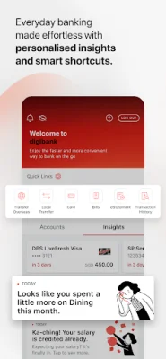 The app also offers personalized services to help you manage your money better. You can pay bills, track cashflow, and receive insights tailored to your financial goals. The app also provides reminders for upcoming payments, possible duplicated payments, and sudden bill increases. Transactions can be securely verified using the Digital Token feature. You can also chat with digibot for assistance with your account, transactions, or loan applications, 24/7. The new insights tab provides improved links and prefilled information for a more convenient banking experience.