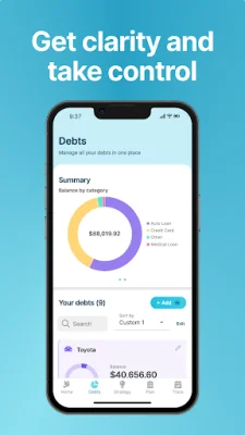 Debt Payoff Planner is an application that helps users become debt-free by providing a customized debt repayment schedule. This is done by entering basic information about loans, such as current balance, APR, and minimum payment amount. The app offers different strategies for paying off debt, including Dave Ramsey's Debt Snowball, Debt Avalanche, Debt Snowflake, and a custom plan.