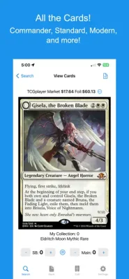 The app boasts a variety of features, including the ability to search for cards instantly without an internet connection, as the database is stored locally. Users can search for cards by expansion, rarity, color, type, or cost. It also has built-in support for various tournament formats, such as Standard, Modern, Extended, EDH, and Classic. Users can choose to see only distinct cards or find every printing of a card in every set. The app also has a full card text search feature, making it easy to find specific cards based on attributes like Landfall, Elf, or Vampire.