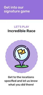 The scavenger hunt is a fun and interactive game called the Incredible Race. It gives you the ability to create tasks for your participants, including answering questions, visiting specific locations and taking pictures or videos, and even drawing tasks. The unique aspect of this game is that each group member will be automatically assigned a task at least once, ensuring that everyone is actively involved in the game.