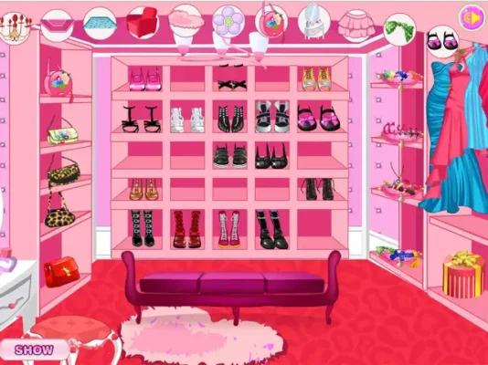 This game is a fun and interactive way to design and decorate your own walk-in closet. It features 12 icons at the top of the screen, each representing a different aspect of the closet such as wallpaper, lighting, and furniture. By clicking on these icons multiple times, you can change the decoration or color of each section, watching as the items magically transform before your eyes.