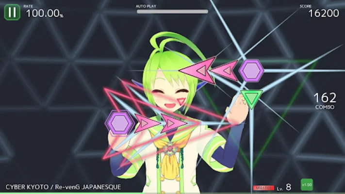 DeltaBeats is an exciting rhythm game that allows you to play with avatars. The game features a unique and visually appealing design with symbols such as triangles, hexagons, and arrows that you must tap, hold, or flick in time with the music. The goal is to achieve a high score through your rhythmic actions.