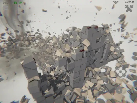 The control of gameplay feature in this application allows users to manage the amount of debris on the screen. If there is too much debris, users can enable the limitation option, which will smoothly make the excess debris disappear. On the other hand, if users want more debris, they can simply increase the destructibility level. This feature gives users the ability to fine-tune their experience and make it more enjoyable.