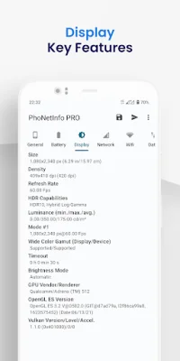 This application allows you to monitor real-time data on your device, including information about your battery, display, network, wifi, mobile data, sensors, camera, memory, CPU, thermal performance, codecs, and secret codes. It provides detailed categories for each type of information, such as general device info, battery health, display size, network operator, wifi standard, and more. The general device info category includes details about your device, such as its name, model, manufacturer, manufacturing date, firmware, and sales country. The battery category displays information about your battery's health, level, status, power source, temperature, and more. The display category shows details about your display, such as size, density, refresh rate, and brightness. The network category provides information about your network, including the operator, type, MCC, MNC, IMEI, IMSI, signal strength, and more. The wifi category displays details about your wifi connection, such as the standard, IP, DNS, and MAC address. The data category shows information about your mobile network interface, IP, DNS, and routes. The sensors category includes details about various sensors on your device, such as hygrometer, barometer, magnetometer, and luxmeter. The camera category displays information about your camera, including resolutions, ISO range, aperture, and flash mode. The memory category shows details about your device's RAM and internal and external storage. Other categories include mountpoints, CPU, thermal, codecs, and secret codes. The app also provides a full list of features and a changelog for updates. It only requires specific permissions to access phone and network information, and the developer encourages users to leave a review if they enjoy the app. In summary, this application is a comprehensive tool for monitoring real-time data on your device. It offers detailed information about various categories, including general device info, battery, display, network, wifi, sensors, camera, memory, and more. It only requires minimal permissions and is regularly updated with new features. If you find the app useful, the developer would appreciate a positive review.