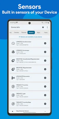 The memory section displays details about your device's RAM and internal and external storage. The sensors section provides information about all the sensors available on your device.
