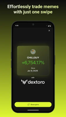 DexToro is a platform that allows users to easily and quickly turn their cash into memecoins. It offers a variety of features such as real-time charts and alerts for trending memecoins, the ability to track moonshots and community favorites, and the option to share successes with friends. With zero gas fees, users can buy and trade vetted and verified memecoins directly from their phone. They can also withdraw their crypto at any time with fast cash-out options.