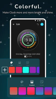 The app also features an edge clock and animated clock, which offer a variety of models, colors, and designs to choose from. These clocks are eye-catching and can be easily set up to match your personal style. The edge clock, in particular, has a simplified design that adds a touch of luxury to your phone.