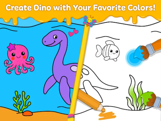 Dino Colouring Book is an interactive and educational app designed for children aged 2-6. It offers a variety of easy coloring pages and activities to help kids learn through creativity and imagination. With adorable animal drawings, rainbows, and magical themes, this app makes learning colorful and exciting for kids.