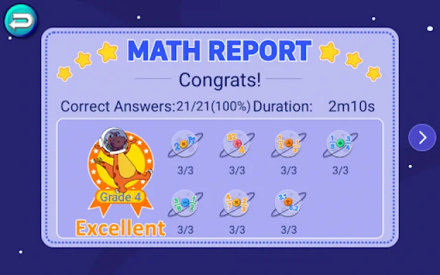 This application is designed for students in grades K-5 and offers a comprehensive math learning experience. Each grade level has 4-12 levels, providing a structured and progressive approach to learning. Within each level, students will have access to a math report that tracks their progress and highlights areas for improvement. This allows for personalized learning and targeted practice to help students reach their full potential.