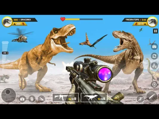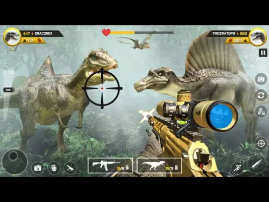 Get ready for an extreme hunting adventure in the forest with the new application, FOREST ----> HUNTING ADVENTURE. This free action-packed dino hunter game will test your skills as you survive by killing dangerous dinosaurs. Aurelian Solutions presents ‘Dinosaur Games Sniper Hunter’, a top-rated action game that will challenge your sniper shooting abilities in a realistic and breathtaking environment. The game is set in two modes - survival and hunting. In survival mode, you must stay alive by avoiding being eaten by the dangerous dinosaurs. In hunting mode, you will have to complete various objectives to test your hunting skills. Each objective completed will earn you rewards that can be used to unlock new snipers. And the best part? It's a completely free game, so play as much as you want! Take on the challenge of hunting different species of dinosaurs such as Velociraptor and T-Rex. But be careful, as these cretaceous creatures are extremely dangerous. Make sure to stay hidden and undetected, or you may end up being hunted before you can hunt them. With sniper 3d guns, become a skilled dinosaur hunter and show other dino games how it's done. To play, simply take your sniper gun and aim at the right dinosaur to shoot and kill. The game features a variety of dinosaurs as your targets, including Brontosaurus, Triceratops, Spinosaurus, Pterodactyl, Stegosaurus, Diplodocus, Mosasaurus, Allosaurus, and Giganotosaurus. With stunning 3D graphics and realistic forest environments, this game will provide a thrilling experience. The controls are smooth and easy to use, making it a user-friendly game. Plus, there is a variety of gun games snipers to choose from, adding to the excitement. Challenge yourself with the objective-based missions and become a skilled sniper 3d dinosaur hunter. You can play the game online or offline, and it does not require wifi, making it convenient to play anytime, anywhere. Download this top-rated dinosaur hunting game and join the ranks of skilled gun shooters. Kill as many dinosaurs as you can and become the ultimate sniper games dinosaur hunter. Don't miss out on this exciting and free game!