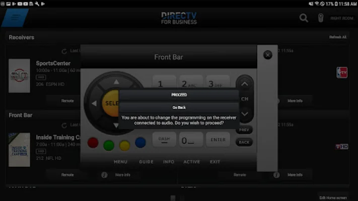 The DIRECTV FOR BUSINESS app also offers the ability to group receivers, allowing users to change multiple TVs at once. This is a time-saving feature that is especially useful for businesses with a large number of TVs. By grouping receivers, businesses can quickly and easily change channels or programming on multiple TVs simultaneously, without having to manually adjust each TV individually.
