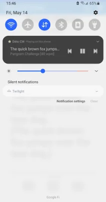 The app is a media player that allows users to play, pause, and skip media from the notification bar. It also has the capability to display the current text over Bluetooth displays. Users can add their own text files or choose from over 100 built-in files from Morse Code Ninja's public domain practice files.