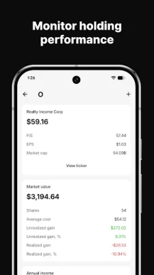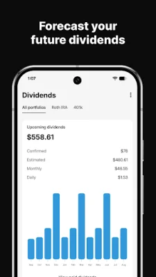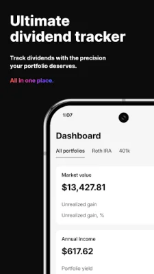 The app also offers a flexible portfolio tracker, making it easy to manage multiple accounts and complex portfolios. This includes automatic sync with over 20 brokerages, CSV import for popular brokerages, manual entry for full control, and API access for programmatically tracking performance and creating transactions.
