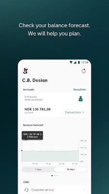 This application provides users with a comprehensive overview of their financial accounts and transactions. With just a few clicks, users can view their current balance as well as their projected balance for the next 30 days. They can also see a detailed list of all incoming and outgoing transactions.