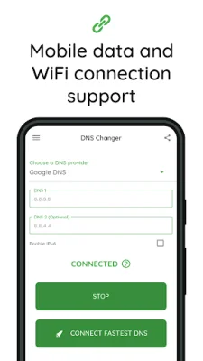 One of the key features of DNS Changer is that it does not require root access and does not consume any system resources. It also supports both WiFi and mobile data networks, making it accessible for all types of connections. The simple design and regular updates for the latest Android versions make it user-friendly and reliable.