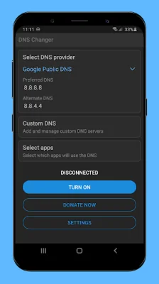This application allows you to change your default DNS server provided by your Internet Service Provider (ISP) to a different one. This can bring several benefits, such as improving your internet speed, blocking ads, accessing region-blocked websites, and protecting your browsing history from being collected by your ISP. It also offers protection against security attacks like phishing, malware, and ransomware.