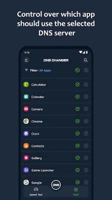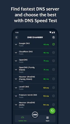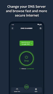 DNS Changer is an application that allows you to easily change your DNS server and find the fastest one through a speed test. It works for both mobile network data and Wi-Fi connections without requiring root access and supports both IPv4 and IPv6 DNS servers. You can choose from a list of preconfigured public DNS servers or add your own custom server. By changing your device's DNS address, DNS Changer helps to keep your web browsing fast, secure, and private. It can also help you access websites that may be blocked by your internet service provider and improve your online gaming experience by reducing latency and providing faster response times. This app improves your internet browsing by optimizing your device's DNS servers. While it may not directly boost your download or upload speeds, it can significantly improve your web browsing time. The default DNS server can have a direct impact on your browsing speed, so by choosing the fastest server based on your location, you can speed up your internet browsing. With DNS Changer, you can easily find the fastest DNS server and connect to it with just one touch. The app offers a list of preconfigured DNS servers, including CleanBrowsing, Cloudflare DNS, DNS.WATCH, Comodo Secure DNS, Google Public DNS, and more. You can also add your own custom server. There are many reasons why you may want to change your DNS server. Some of the benefits include being able to freely explore your favorite sites and apps, enjoying a fast and private browsing experience, staying secure on public Wi-Fi, accessing restricted websites, and preventing access to malicious sites. It can also improve your online gaming experience and is easy to use with just one tap. DNS Changer offers a variety of key features, including the ability to control which apps use the selected DNS server (Pro version), a DNS speed test to find the fastest server, a list of preconfigured public servers, the option to add your own custom server, real-time network information, and support for both mobile network data and Wi-Fi connections. It also works without root access and does not consume system resources or collect personal data. The app is 100% ad-free and uses a VPN service to only set up a local VPN interface for changing DNS server addresses. If you have any questions or suggestions, you can contact the support team at [email protected].