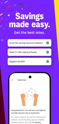It's important to note that normal data charges may apply when using the app, so be sure to check with your mobile phone service provider for details. Additionally, not all internet banking features may be available through the app. ING Bank (Australia) Limited is the business name of ING Bank (Australia) Limited ABN 24 000 893 292 AFSL 229823, and Australian Credit Licence 229823. You can find our Terms of Use and Target Market Determinations on our website at ing.com.au. If you have any questions, our new App help hub at https://helphub.ing.com.au/new-app/ is available to assist you. Thank you for choosing ING for your banking needs.