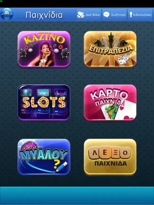 Η εφαρμογή "dod Games" προσφέρει την απόλυτη ελληνική gaming εμπειρία στο κινητό σας. Μέσα από αυτήν, μπορείτε να ανακαλύψετε έναν κόσμο διασκέδασης με τα αγαπημένα σας παιχνίδια, όλα συγκεντρωμένα σε μία εφαρμογή. Επιπλέον, μπορείτε να συνομιλήσετε, να γνωρίσετε νέους φίλους και να παίξετε online με χιλιάδες Έλληνες παίκτες. Η περιπέτεια της διασκέδασης ξεκινάει εδώ, σε μία εφαρμογή που συνδυάζει την κοινωνικοποίηση και την ψυχαγωγία.