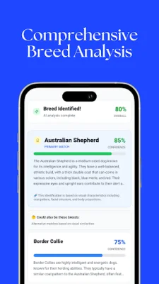 The app works by analyzing a photo of your dog using advanced computer vision and providing you with instant breed identification and confidence scores. You can also save and review your previous identifications for future reference. And don't worry about privacy - your photos are processed securely and never shared without your permission.