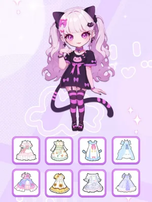 This application is a fun and easy-to-play game that allows you to match different clothing items. With just a click, you can create unique and stylish outfits according to your own ideas. The game offers a wide range of clothing options, from skin color and hairstyles to socks, bags, and accessories, giving you endless possibilities to design your perfect look.