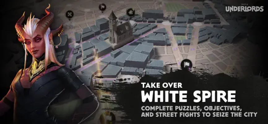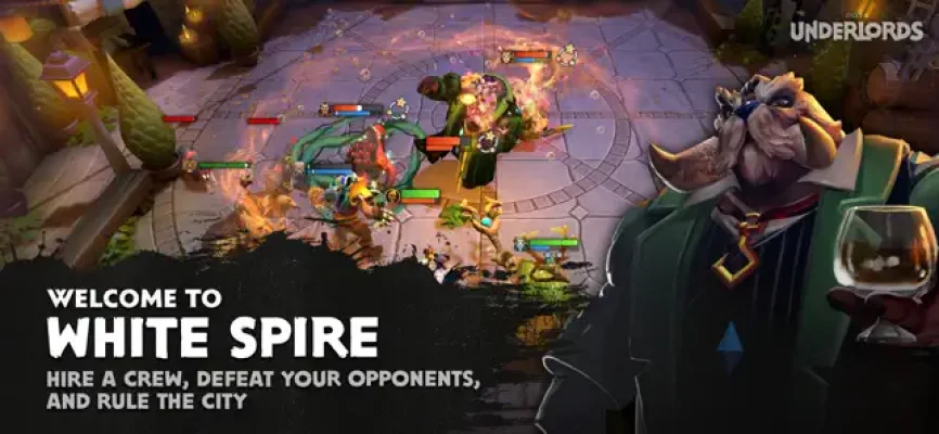 The game is set in the vertical metropolis of White Spire, known for its gambling and loose morals. After the murder of the beloved leader, Momma Eeb, the city is in need of a new leader. Players must strategize to win by recruiting and upgrading heroes, forming alliances, and choosing from four powerful Underlords to lead their crew to victory.