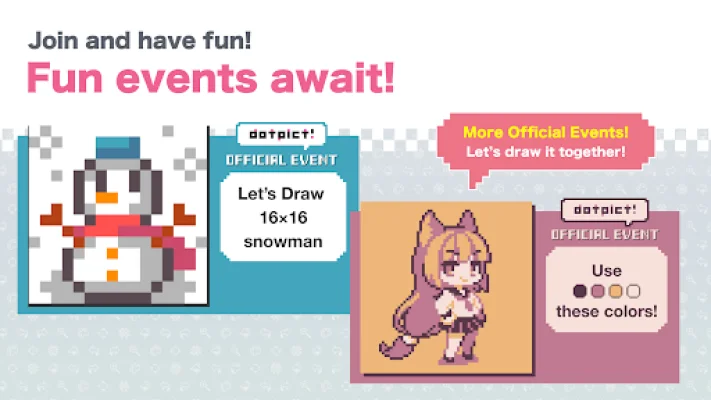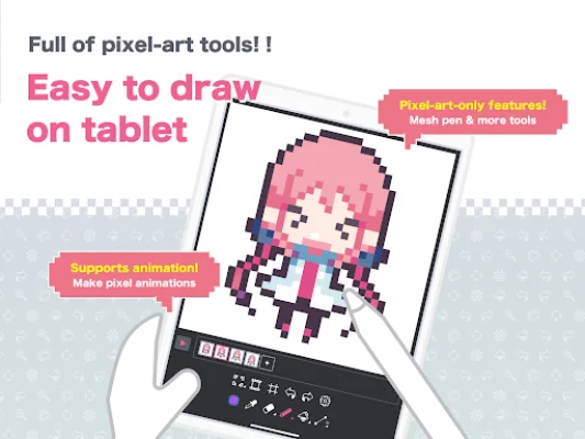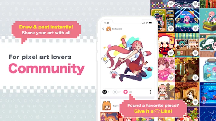 Create pixel art on your mobile device with this app and share it with a global community of users! With precise cursor controls, you can place pixels exactly where you want them. You can also use a pen or your finger to switch to a draw-along-trace mode. This app is packed with pixel-art tools like mesh pen, outline, onion skin, and more. Your work is automatically saved, and you can even create animated GIFs. Join in on daily prompts and challenges to challenge yourself and improve your skills. These prompts can range from drawing an apple or a seal to creating a pixel art using only specific colors or sizes. You can also customize templates in challenges like decorating an omelette rice. If you're feeling creative, you can even create your own challenges and invite others to participate. Connect with other users by posting your creations made in this app or other apps. With hundreds of new works posted daily, you'll never run out of inspiration. You can interact with other users through likes, comments, and follows. With a large and active community, getting feedback on your work is easy and encourages growth. Don't wait any longer, download this app now and join the global community of pixel art creators! With its user-friendly interface and a variety of tools and challenges, you can create and share your pixel art with others around the world. So let your creativity flow and enjoy the world of pixel art with this app.