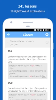 Dr French is an innovative application designed by experienced French teachers to help learners from all over the world understand the complexities of French grammar. It offers over 240 lessons and 700 exercises, all organized by topic and level for easy and efficient learning. The app also includes a "Homework" section where users can add lessons and review them at their own pace. One of the unique features of Dr French is the "doctor's suggestions" which allows users to set their learning pace and have lessons automatically added to their homework. This ensures a steady progression and personalized learning experience. The app also offers offline access, making it convenient for users to review French grammar anytime and anywhere. With a search bar feature, users can easily search for specific words or concepts they are struggling with and access relevant lessons. The content is available in four languages - French, English, Portuguese, and Mandarin Chinese - with over 1000 translated examples for better understanding. Dr French is solely focused on French grammar and does not include vocabulary lessons, making it a valuable tool for those specifically looking to improve their grammar skills. The app also has no advertisements or unwanted notifications, providing a distraction-free learning environment. In case of any issues, the app has a responsive team ready to assist users. And unlike other apps, Dr French does not use pop-ups to ask for ratings, so if you enjoy using the app, please consider leaving a rating. With Dr French, learning French grammar has never been easier and more convenient. Give it a try and see for yourself!