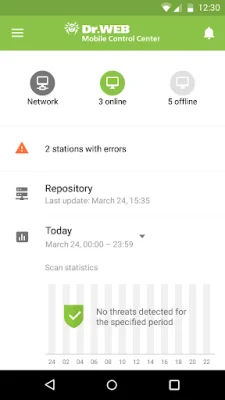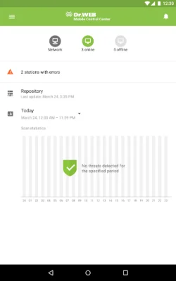 Dr.Web Mobile Control Center is an application that allows users to connect to Dr.Web Server using their anti-virus network administrator credentials. This connection is made through an encrypted protocol, ensuring the security of the network. The application has a variety of general functions that allow users to manage their Dr.Web Server repository. This includes viewing the state of products in the repository and launching updates through the Dr.Web Global Update System. Users can also manage stations where an update of the anti-virus software has failed, by displaying the failed stations and updating the components on those stations. In addition, the application provides statistics on the state of the anti-virus network, such as the number of registered stations and their current online/offline status, as well as viral statistics for protected stations. Users can also manage new stations waiting to connect to the Dr.Web Server by either approving or rejecting their access. The application also allows users to manage the anti-virus components installed on stations in the network. This includes launching fast or full scans for selected stations or groups, setting up the reaction of the Dr.Web Scanner to malware detection, and managing files in the Quarantine. Users can also manage stations and groups by viewing their properties, managing the components of the anti-virus package, deleting them, sending custom messages, rebooting them, and adding them to a favorites list for quick access. To make it easier to find specific stations and groups in the network, the application has a search function that allows users to search by different parameters such as name, address, and ID. Users can also view and manage messages on major events in the network through interactive Push notifications. This includes displaying all notifications, setting reactions, searching for specific notifications, and deleting or excluding them from automatic deletion. Overall, Dr.Web Mobile Control Center is a comprehensive and efficient tool for managing and maintaining an anti-virus network.