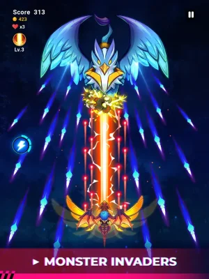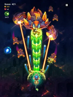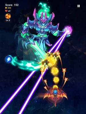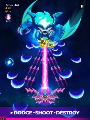 The game offers a fast-paced, action-packed experience for fans of space shooting games. It combines classic arcade shooter combat with RPG customization and Roguelike progression, providing endless thrills. You can unlock and power up over 10 dragon heroines, each with their own unique abilities, and master the tactical cycle of Wind, Fire, and Ice to defeat your enemies. You can also equip powerful weapons, relics, and upgrades to dominate the battlefield.