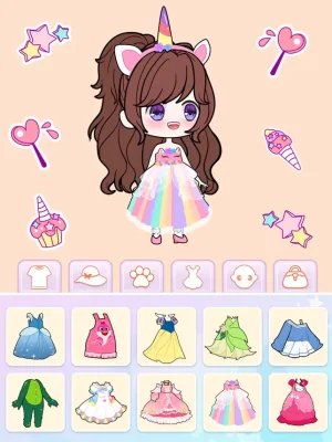And for even more fun, there are also funny mini games and a Gacha feature in the Chibi world. Not only can you dress up your chibi doll in thousands of lovely outfits, but you can also play interesting games and collect candy to get free chibi dresses and more.