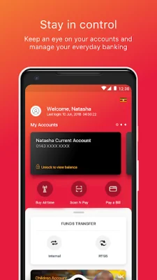 The app also offers features for everyday expenses, such as household bills and payments for goods and services, including buying airtime. Users can also perform basic functions such as checking their balance, loading a mini-statement, updating bank information, and adding or deleting users on commonly used accounts.