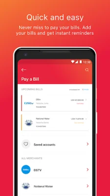 One of the key features of this app is the utility bill presentment, which allows users to view their upcoming bills 5 days before they are due for payment. This gives them enough time to plan and ensure that they have enough funds to cover their bills. The app also allows users to access and select beneficiaries for mobile money transfers and airtime purchases directly from their phonebook, making it easier and faster to send money to friends and family.