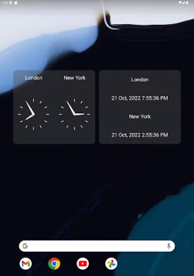 This application is a clock widget that can be added to your device's home screen. It offers both analog and digital modes, allowing you to choose the style that best suits your preferences. One of the unique features of this widget is the ability to set different time zones for each clock. This is perfect for those who frequently travel or have loved ones in different parts of the world.