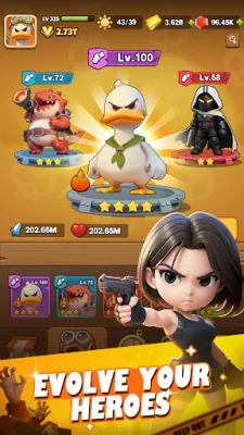 To help you in your fight against the undead, you can assemble a team of skilled agents, machine-gun-wielding baby dragons, and other super-powered heroes. By combining different elements like Burning, Lightning, Frost, Energy, and Physical, you can activate exclusive team synergies and build an invincible duck army.