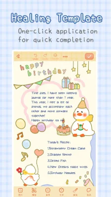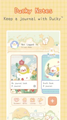 Ducky Notes is a unique journal diary application that features a cute and healing "Ducky" theme. This app allows you to write and record your daily thoughts and experiences with the company of a lovable Ducky. The app also offers a variety of free materials at Ducky's material store, making it easy and fun to create your own personalized journal entries.