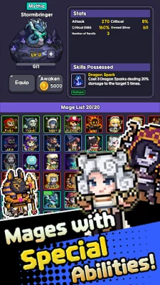 The controls for this game are simple and easy to use, allowing you to focus on slaying waves of monsters with just one hand. You can also summon up to 20 Mages with unique magic spells, ranging from gun-shooting magic to powerful abilities like Black Holes and Meteors. This allows you to create your own special forces and increase your chances of survival.