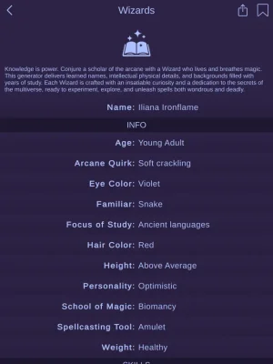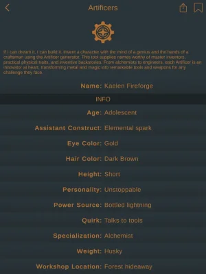 But it's not just about creating worlds, Dungeon Roller also brings characters and creatures to life with rich details such as names, skills, solar system data, and army unit types. And if you need a new monster or culture, all you have to do is tap. It's that simple.