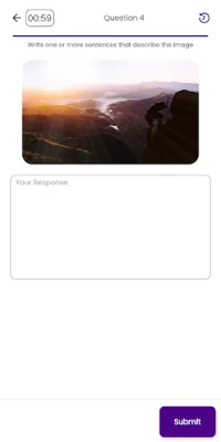 The sixth type is "Write About a Photo," where users will be shown a photo and then write a short description or response. This helps users practice their writing skills and ability to describe visual information.