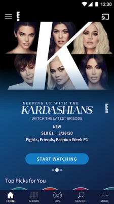 The E! app allows users to watch full episodes of popular pop culture shows like Keeping Up with the Kardashians, Total Bellas, The Bradshaw Bunch, Botched, and Live from E!. With new content constantly being added, users can stay up-to-date on the latest must-know entertainment news. The app is available for download and is supported by most TV providers, including DirecTV, Xfinity, Spectrum, AT&T, and Dish.